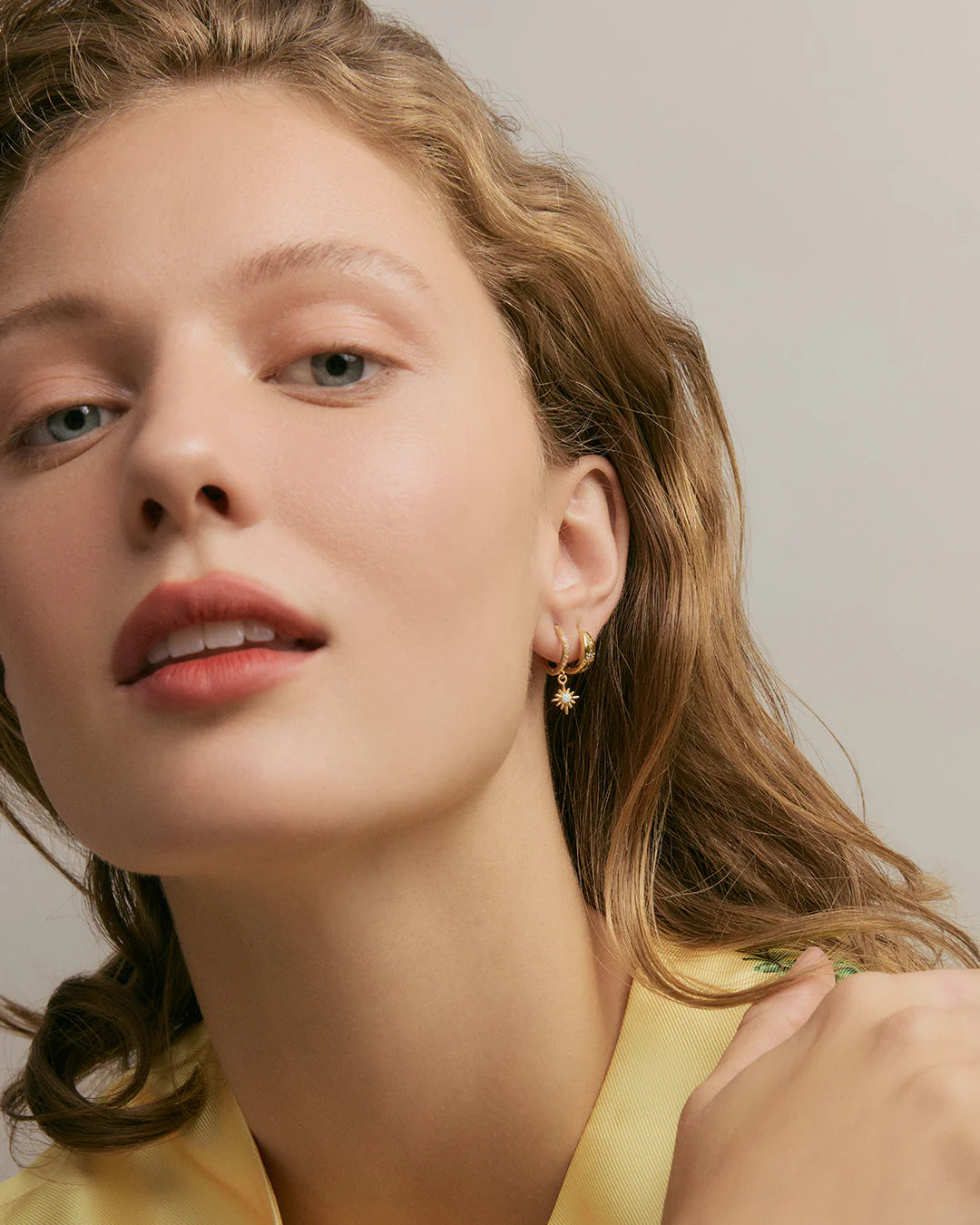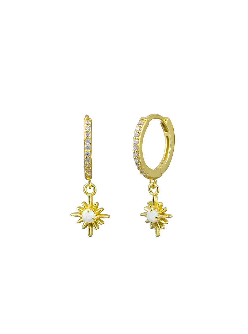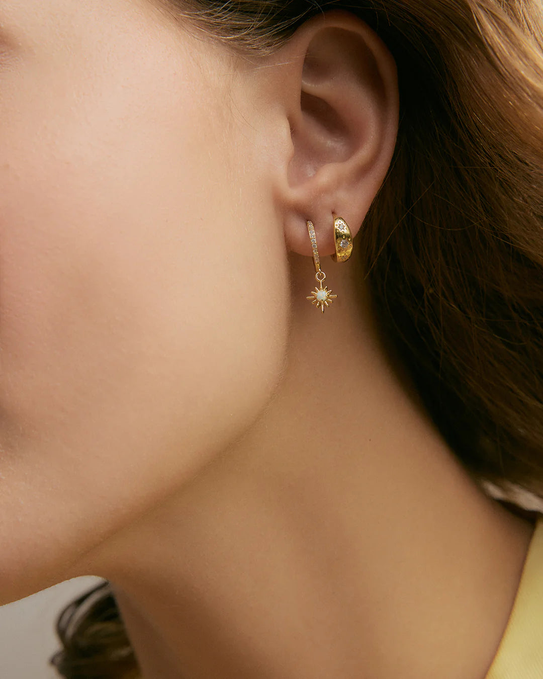 The Eden Sleepers exude a refined, feminine aesthetic with their dainty crystal sleeper and dangling faux opal in star design. A great way to add a touch of simple elegance to any outfit. Perfect for stacking.