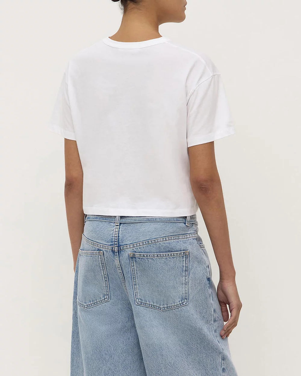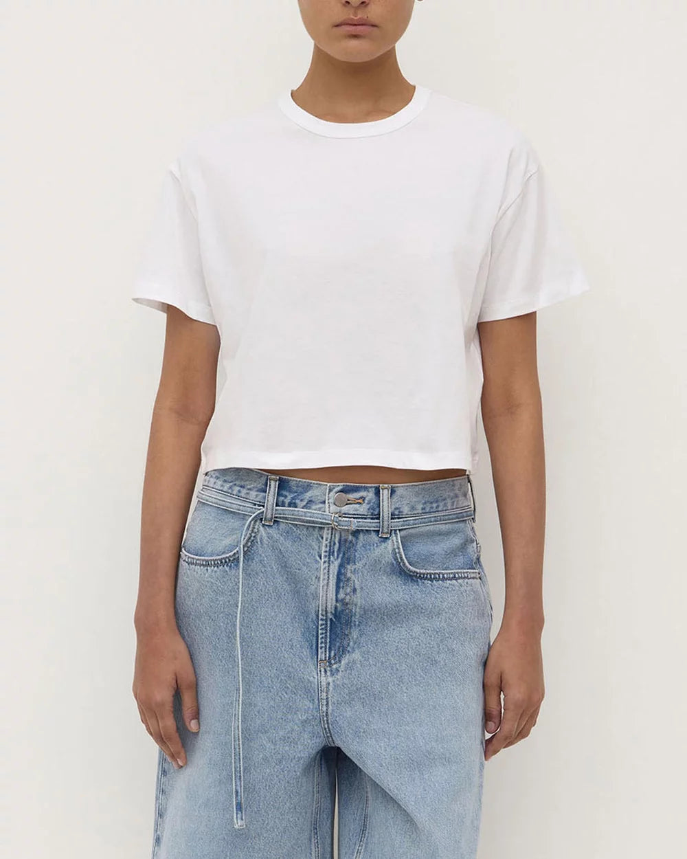 - Ribbed neckline- Cropped length- Boxy fit- 100% cotton jersey
