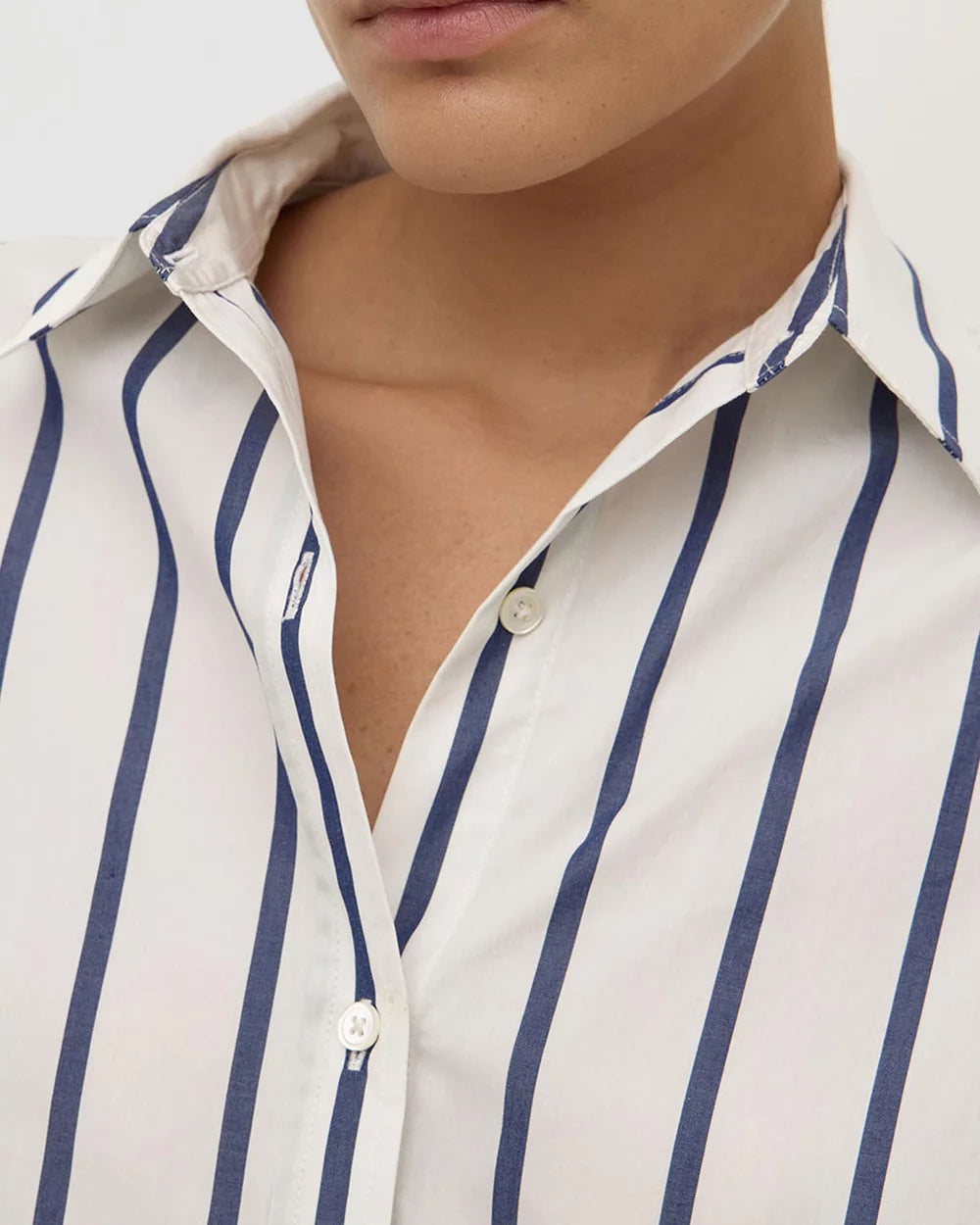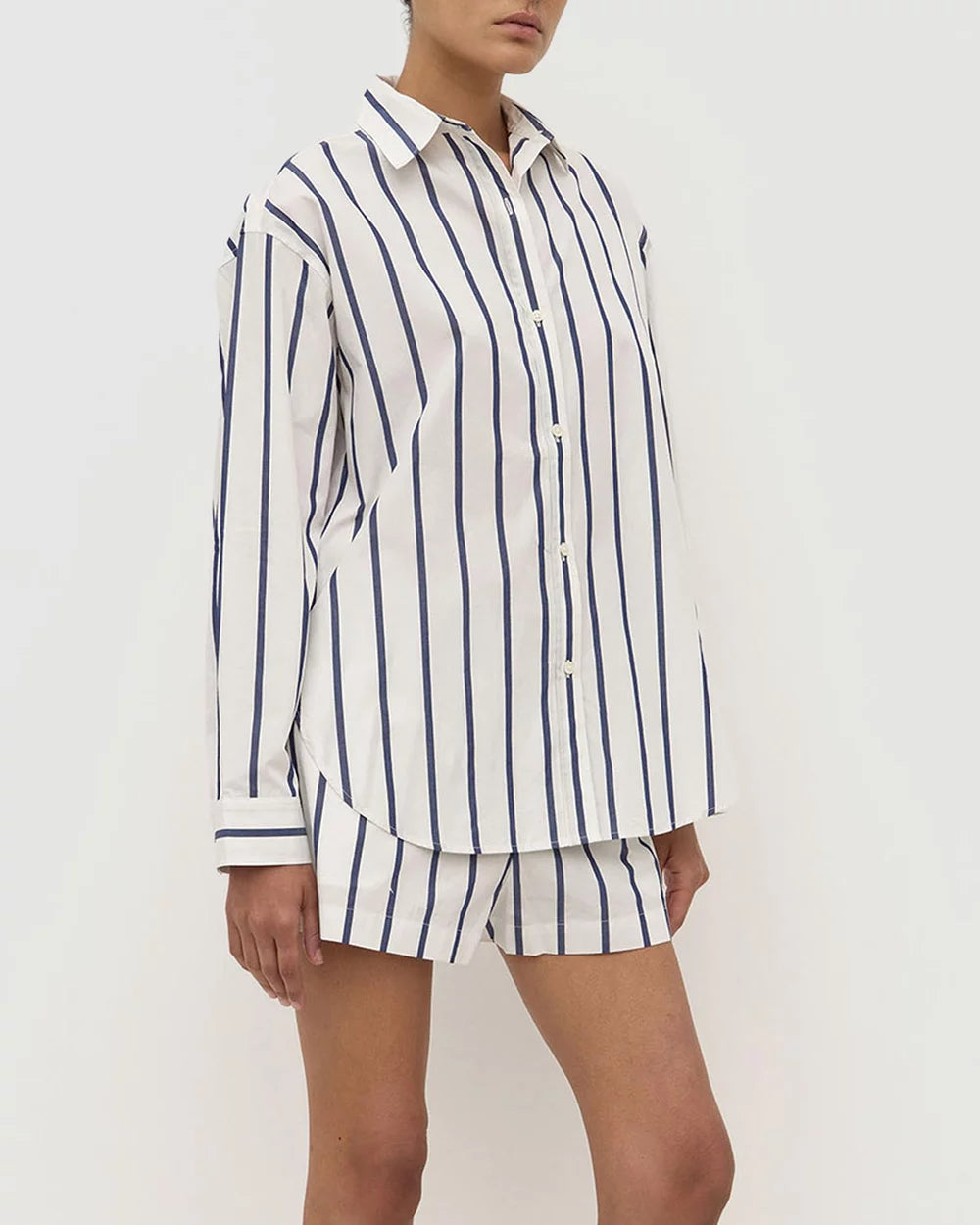Crafted from our signature cotton poplin, this shirt is cut in a relaxed silhouette and features a new season stripe. Can be worn with the matching Nara Stripe Short.