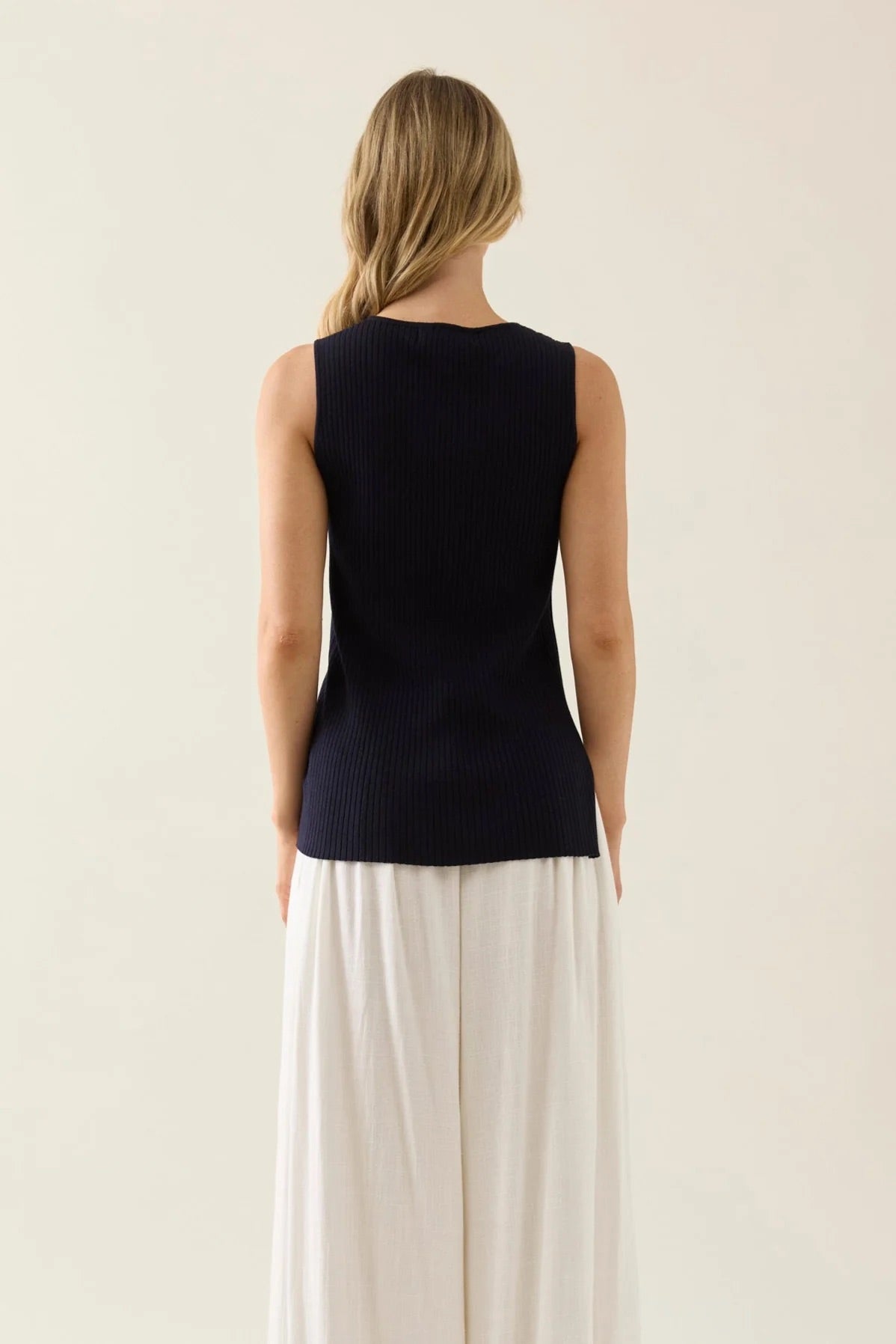 The staple of the season, the Adele Tank is a ribbed knit style with a flattering scoop neckline and a slightly cropped cut. Its generous stretch ensures comfort while keeping shape.