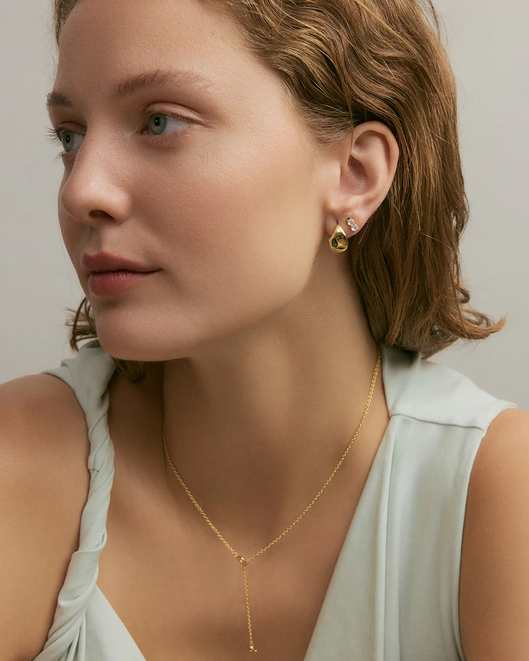 The Devon Studs feature a pair of subtle crystals that bring a touch of shimmer to your look. Perfect for everyday use or dressing up for special occasions.