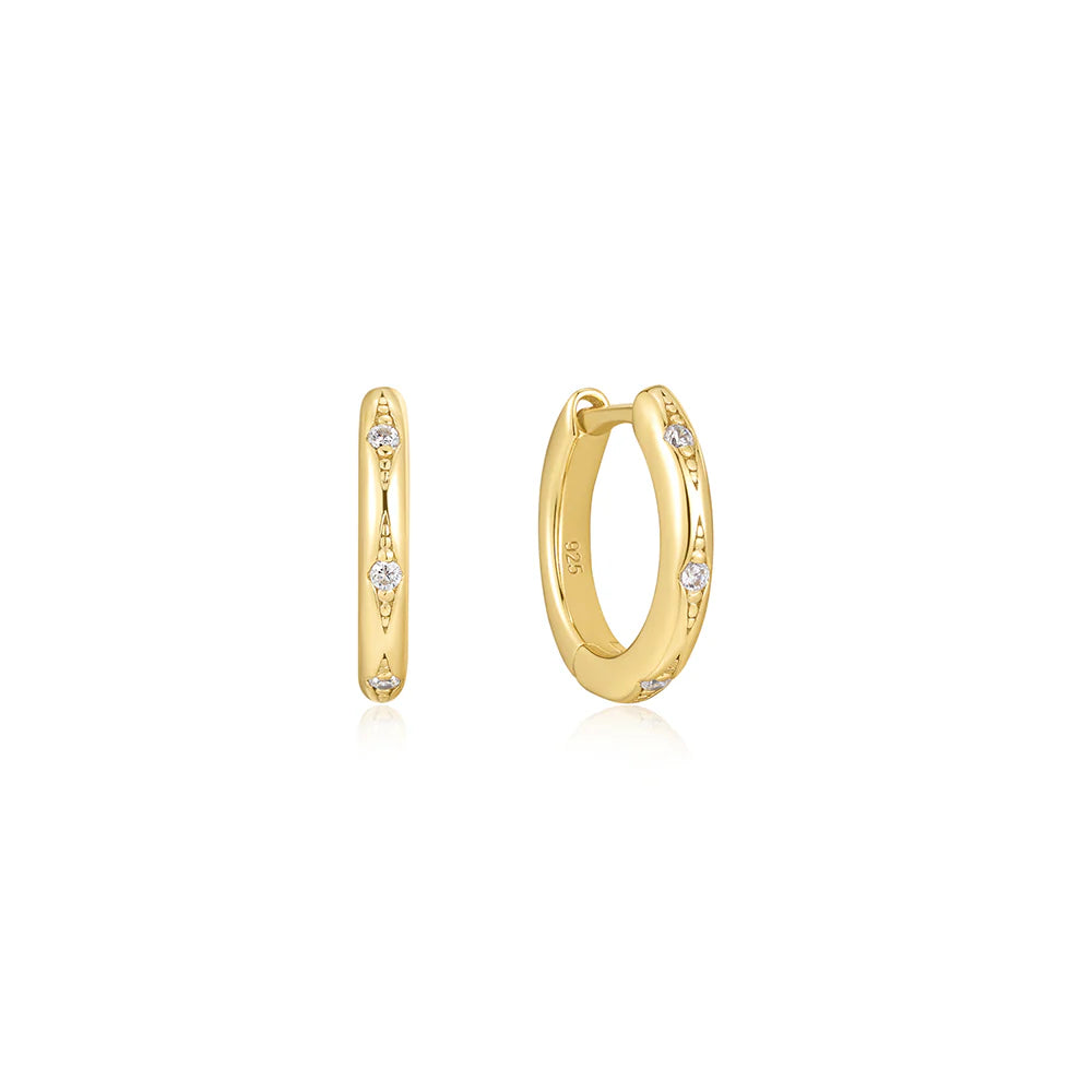 The Steph Sleepers are handcrafted with two crystals embedded on a thin gold huggie style sleeper. These gorgeous earrings are perfect for stacking.