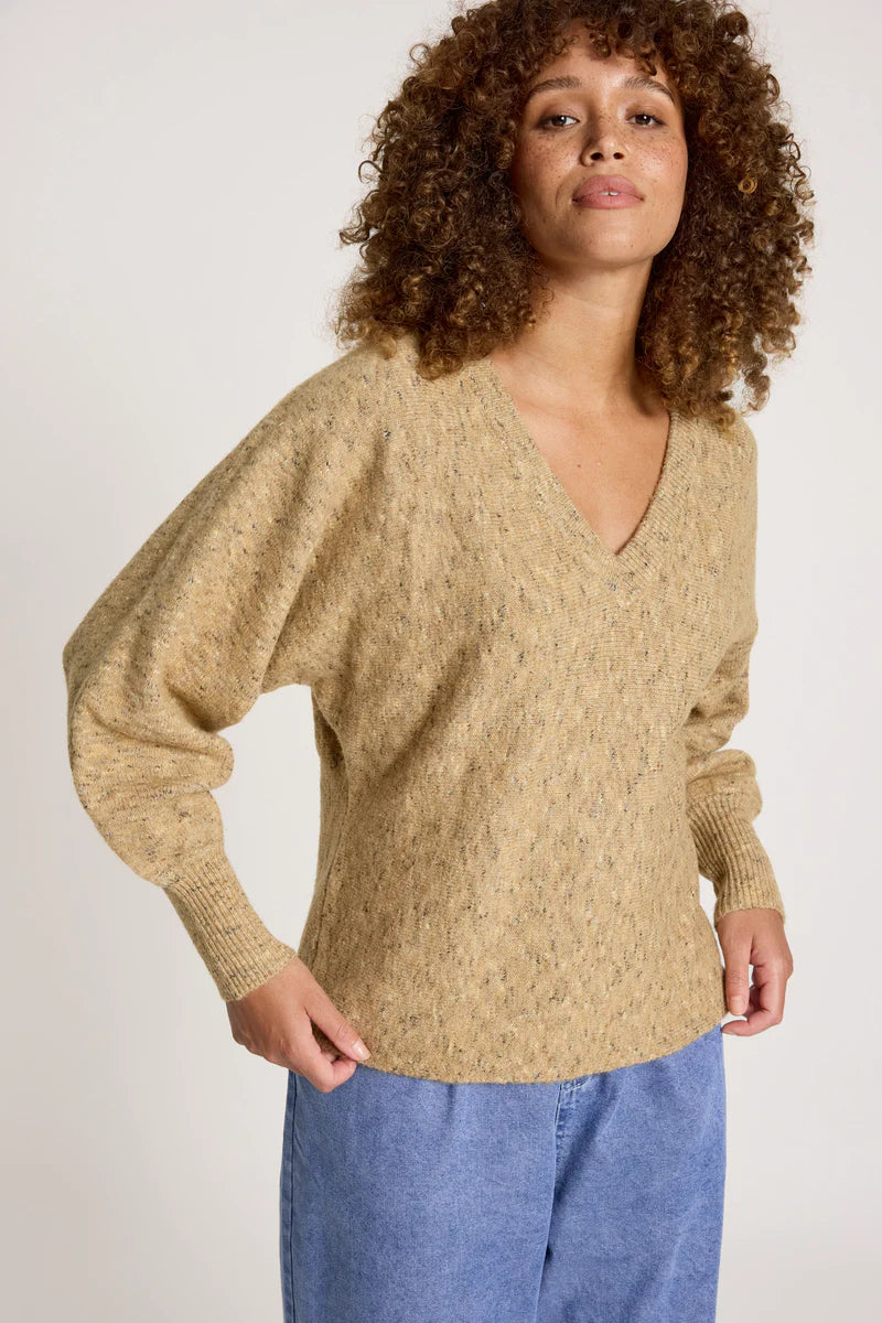 A softly structured knit jumper designed for everyday winter wear. Crafted from a warm wool-blend with variegated yarn, the Zarda Jumper features a ribbed V neckline, gently bellowed sleeves tapering to the cuff, and a ribbed hem that creates a flattering, streamlined silhouette. Comfortable, wearable and effortlessly polished.