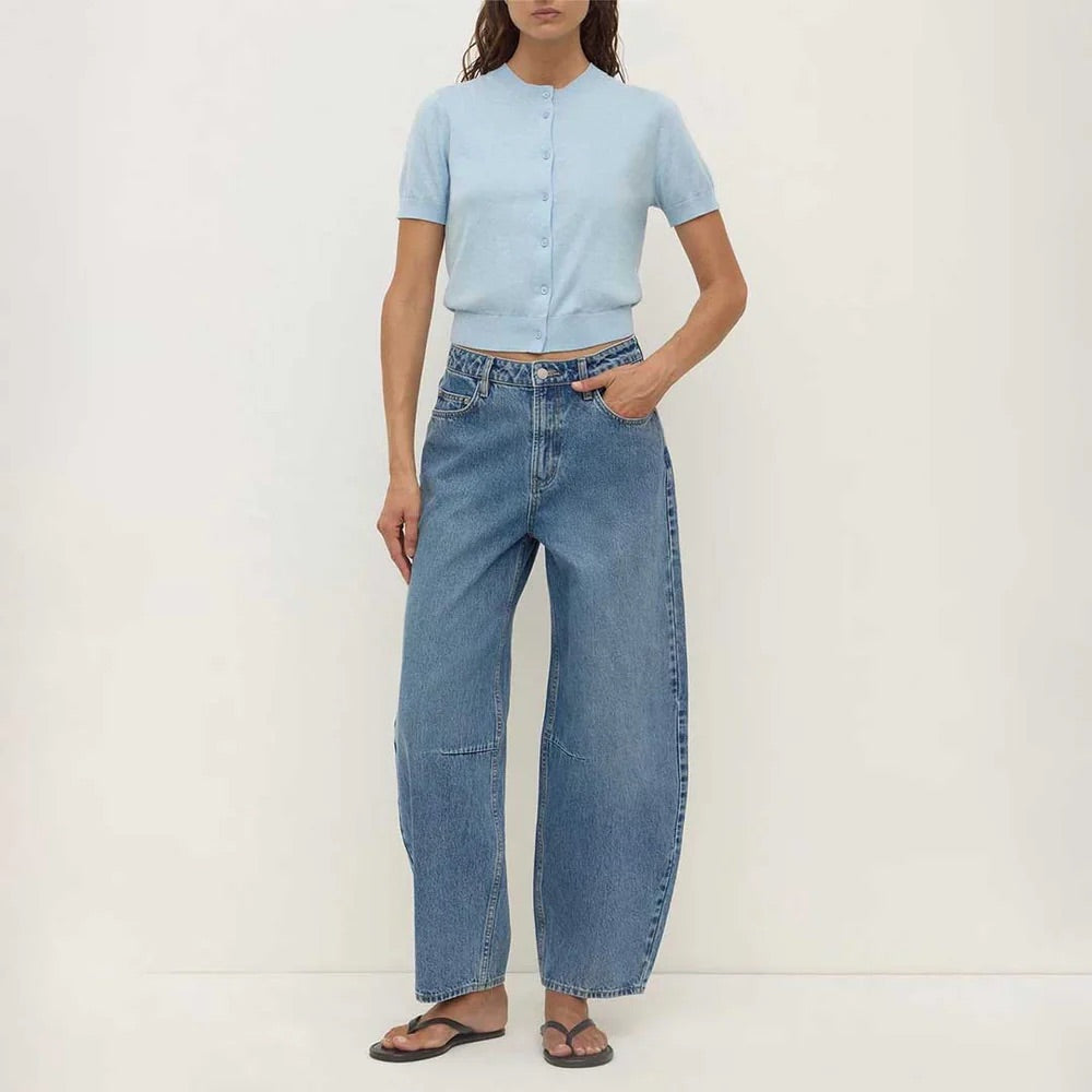Semra Cotton Cashmere Short Sleeve Cardigan - Salt